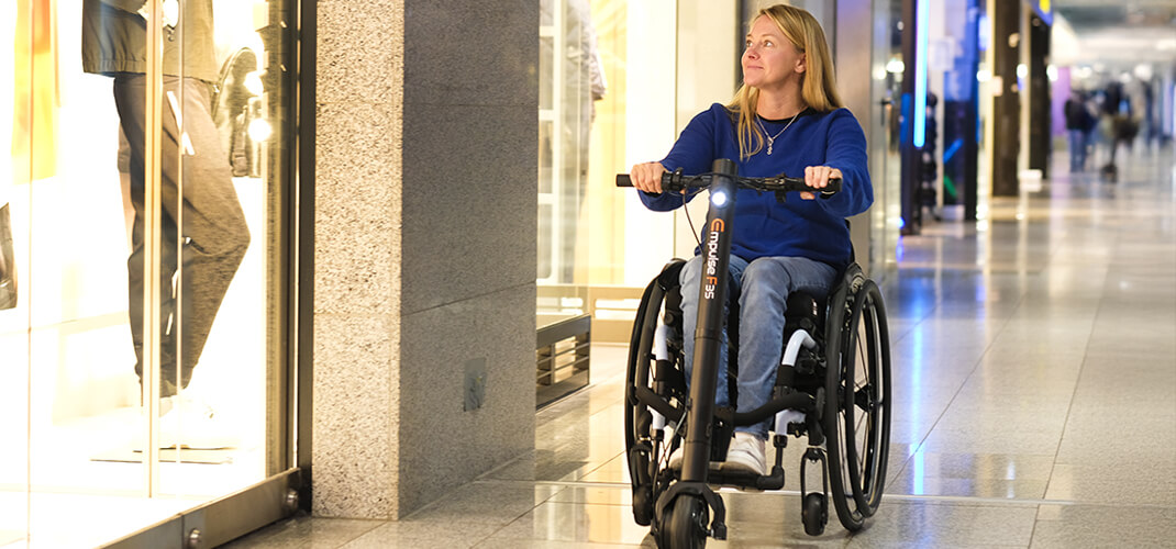 - Træk-enheder: Et beslag fastgøres fortil til kørestolens forramme, og motoriserede hjul leverer kraften. Håndtagene giver kunden mulighed for at styre og kontrollere hastigheden. EMPULSE træk-enhederne er F35, F55, StreetJet and Attitude.