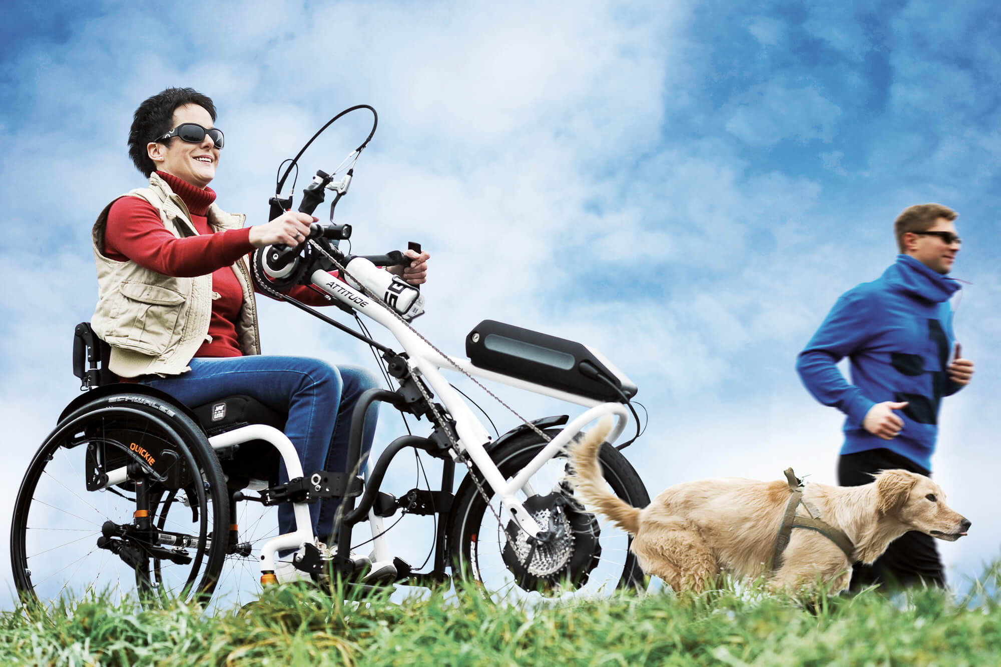 QUICKIE Attitude Manual er ideel for dem, der ønsker at forbedre deres styrke og generelle udholdenhed gennem rekreativ cykling. Håndcyklen leveres med 20 " forhjul og 30 gear. Det giver exceptionelle køreegenskaber, som er perfekt til kørsel i det meste terræn. Den utrolig lette tilkobling til kørestolen med kun et lille beslag monteret gør, at QUICKIE Attitude Manual påspændingscykel er den perfekte kombination til din aktive letvægtskørestol. Du kan frit vælge mellem 24 forskellige rammefarver, hvilket gør det muligt at matche din rammefarve på kørestolen.